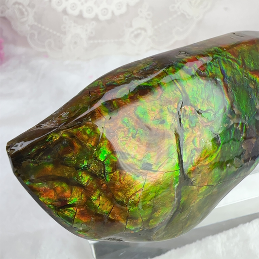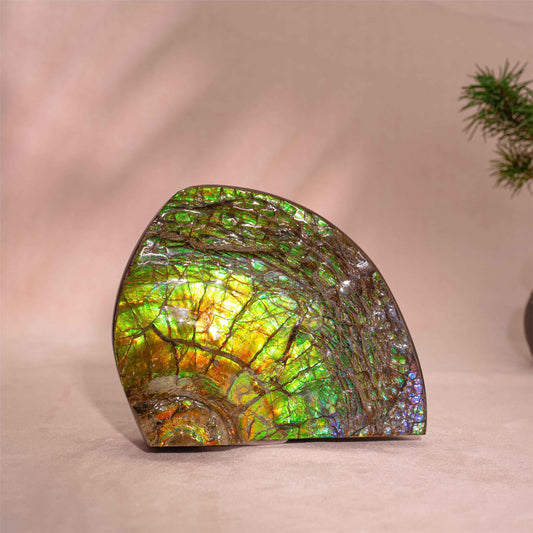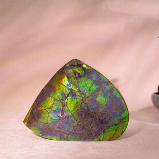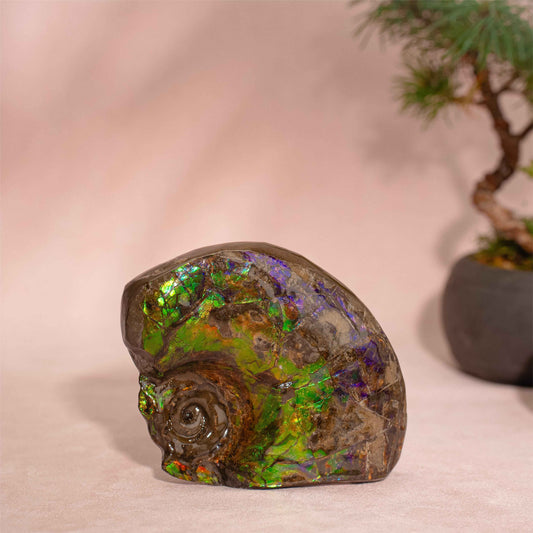 Crystal Hint 斑彩石擺件系列匯聚多款 Ammolite 原石作品,包括心型、雕刻與原墩擺件,每件皆經精細封膜與拋光處理,保留獨特色澤與天然紋理。Ammolite,亦稱斑彩石,是由菊石化石演化而成的有機寶石,色彩絢麗且富含自然能量,傳統上被認為有助淨化氣場、提升元氣、促進身心調和。這些擺件兼具收藏與療癒功能,適合放於家居或工作空間,作為美學品味與靈性啟化的完美結合。無論用於裝飾、冥想或能量療癒,它們都是自然與藝術的結晶,為生活增添獨特魅力。