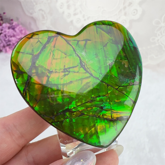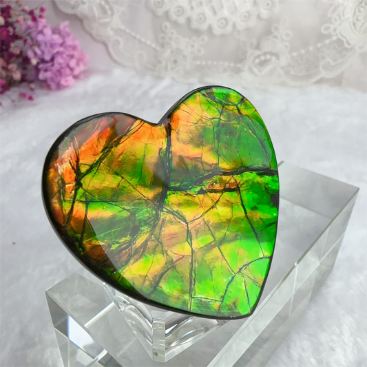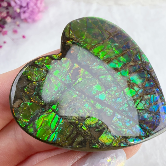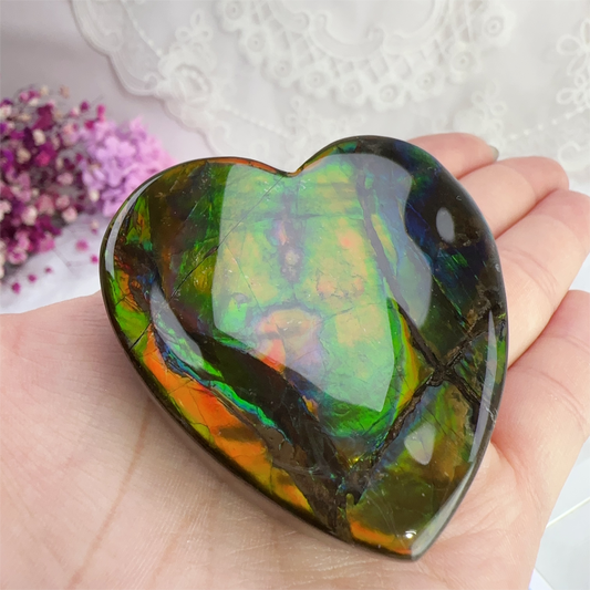 斑彩石(Ammolite,又稱斑彩螺化石)是一種由菊石(ammonite 化石)演變而來的寶石,表面呈現虹彩光澤,呈現紅、橙、黃、綠、藍、靛、紫等多色變化,因色彩斑斕而得名。
