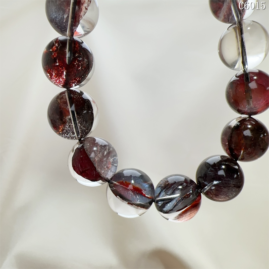 天然水晶 - 牛血紅膠花手串(高貨)C6015