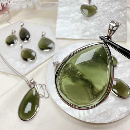 天然水晶 - 捷克綠隕石吊墜