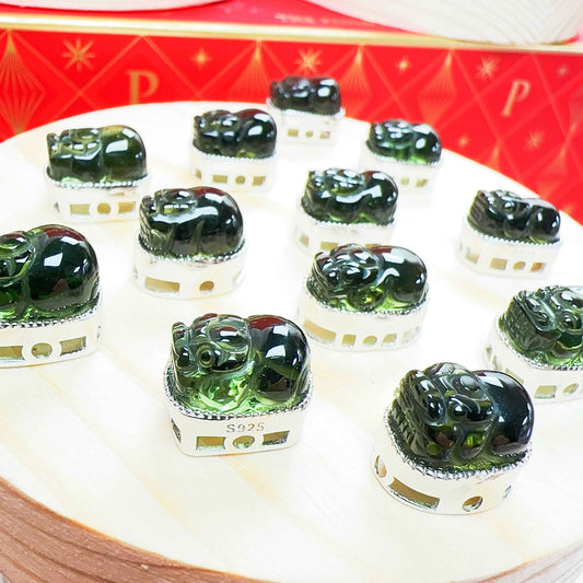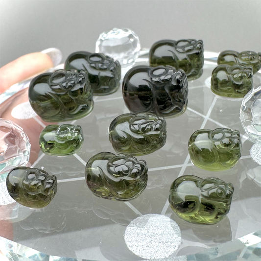 天然水晶 - 捷克綠隕石貔貅盒子C8014