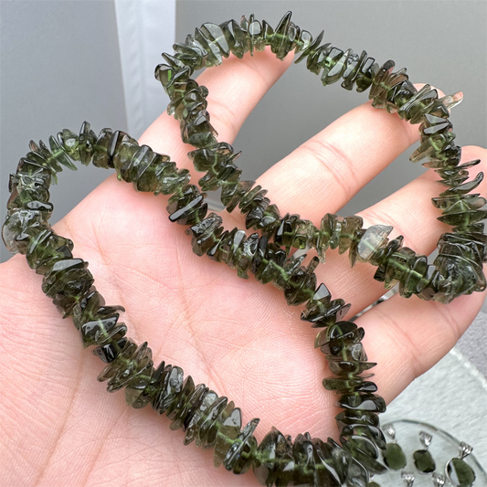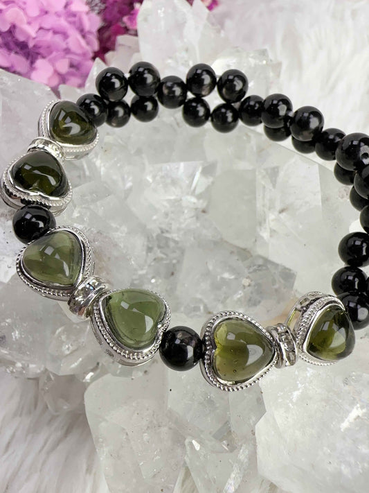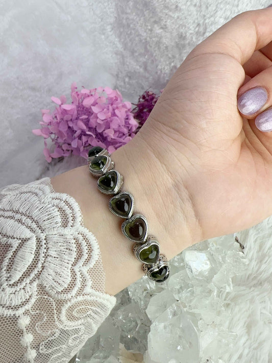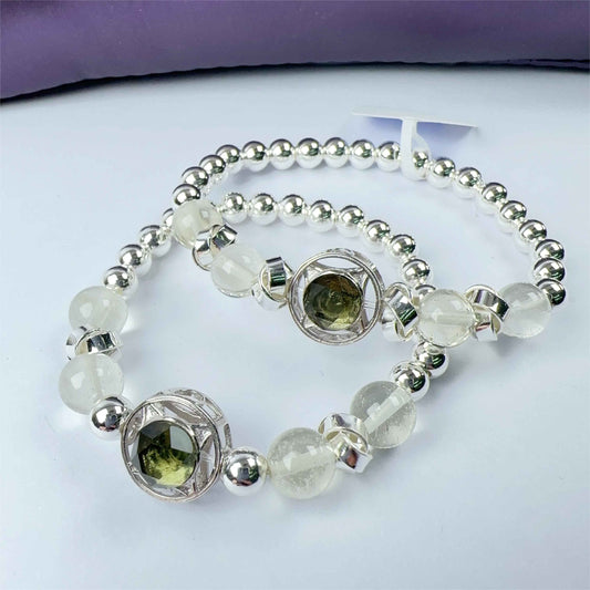 天然水晶 - 捷克綠隕石'星星x心心'設計款手串D1035